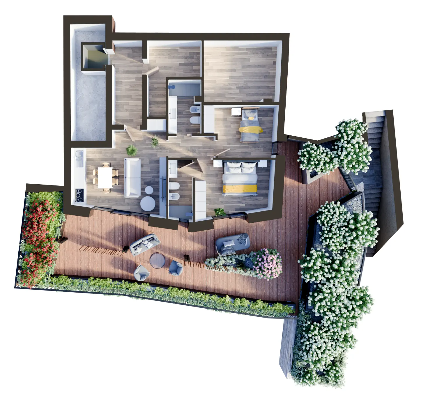 Tutta la documentazione grafica e testuale è puramente illustrativa, così come le misure riportate sono frutto di progetto e sono suscettibili di modifiche in fase di esecuzione e non costituisce vincolo contrattuale.